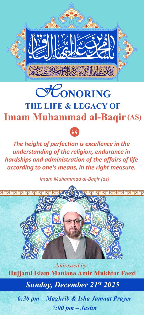 7:00pm - Jashn addressed by H.I. Maulana Amir Mukhtar Faezi