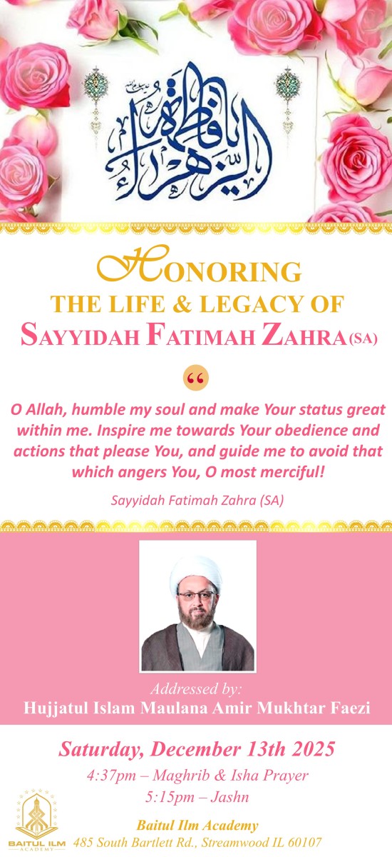 7:30pm - Majlis addressed by H.I. Maulana Amir Mukhtar Faezi