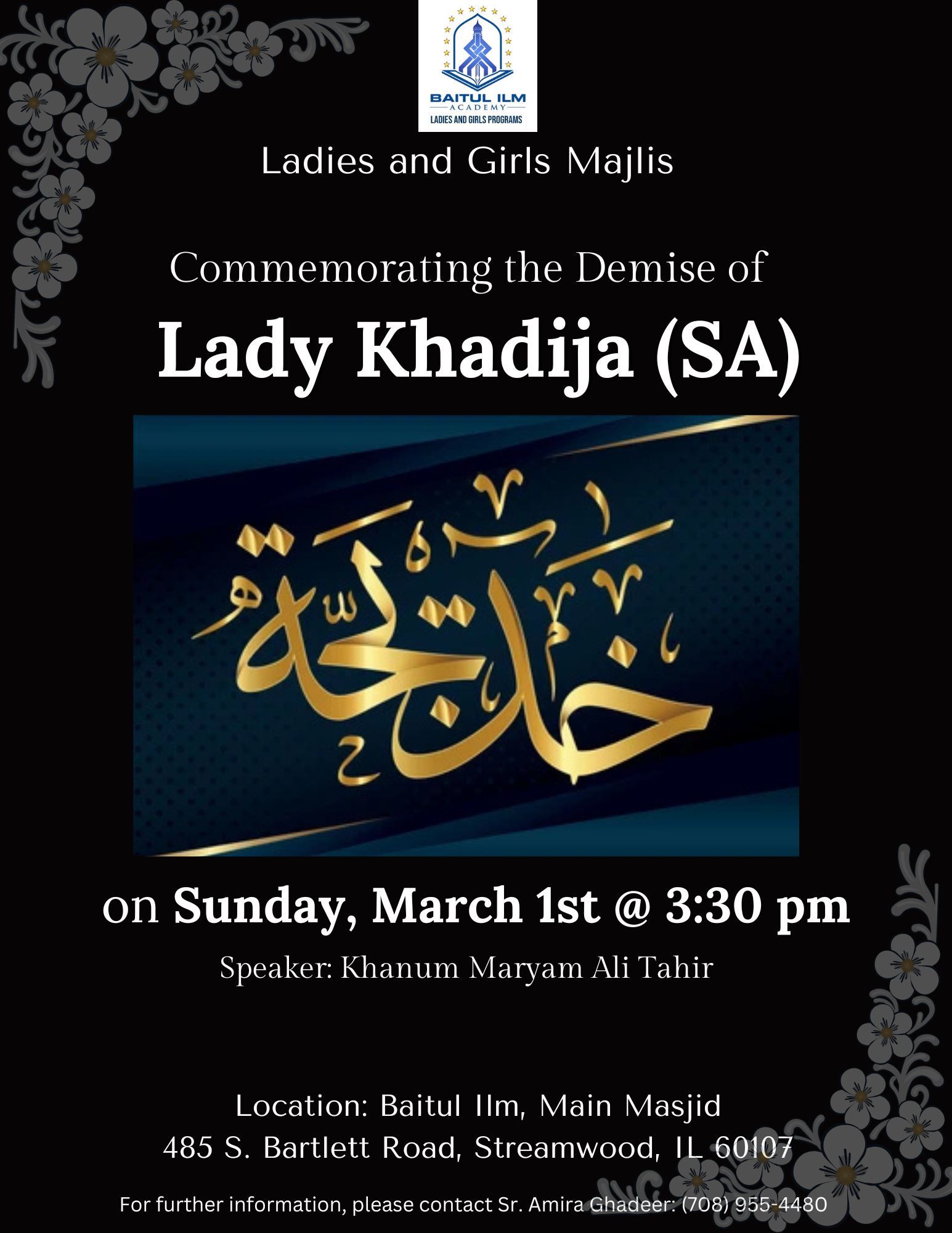 If you would like to recite please contact Sr Amira Ghadeer at 708-955-4480