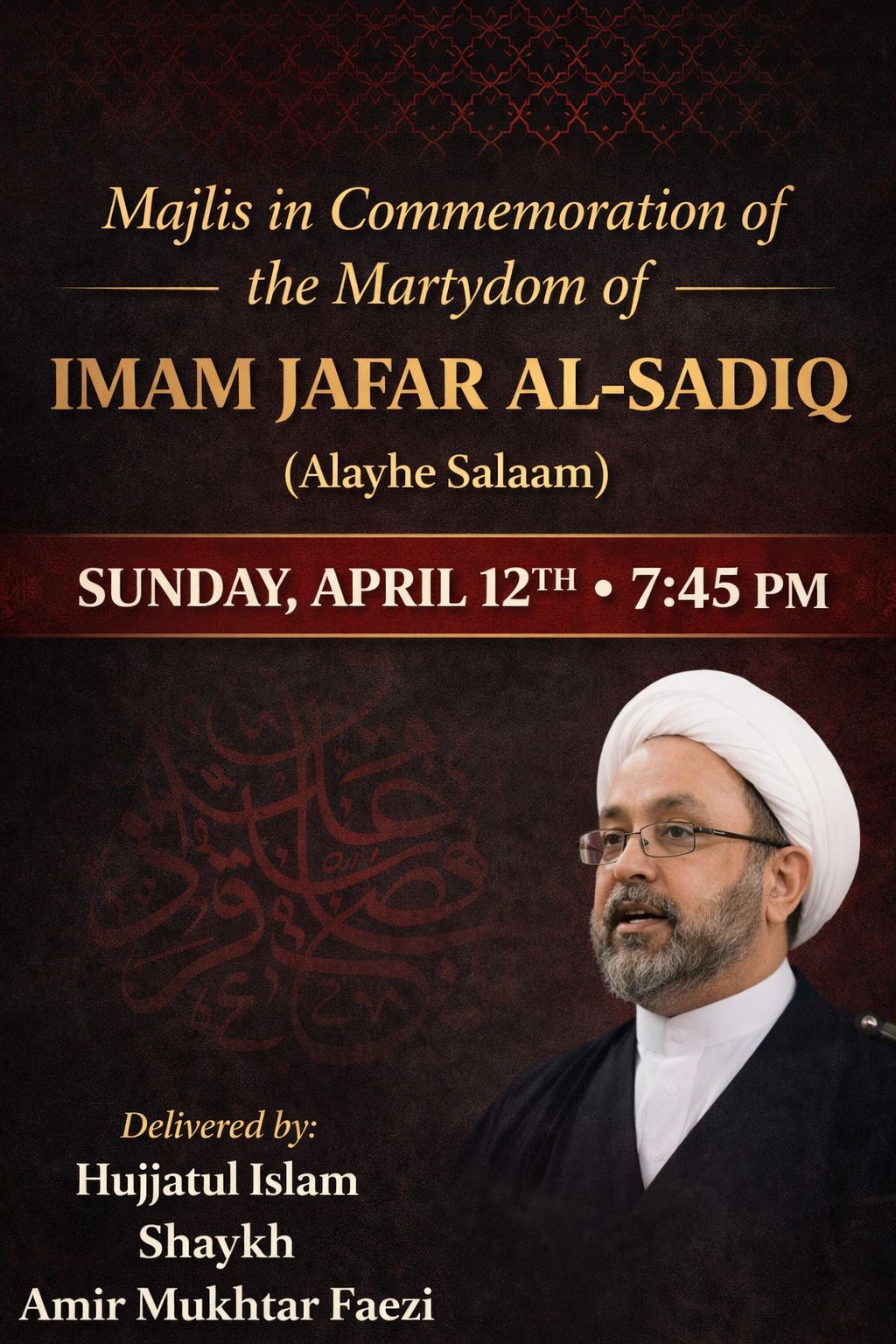 Majlis to Commemorate the Martydom of Imam Jafar Al-Sadaq (Alayhe Salaam)