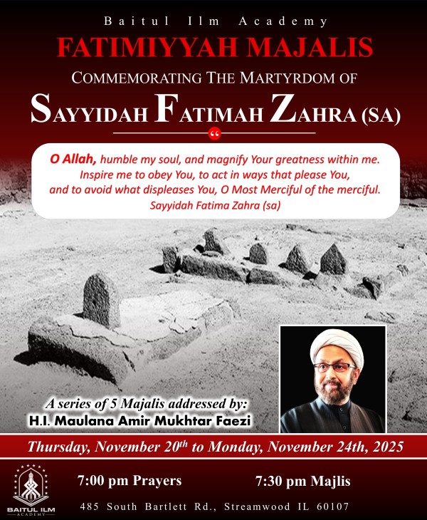 7:30pm - Majlis addressed by H.I. Maulana Amir Mukhtar Faezi